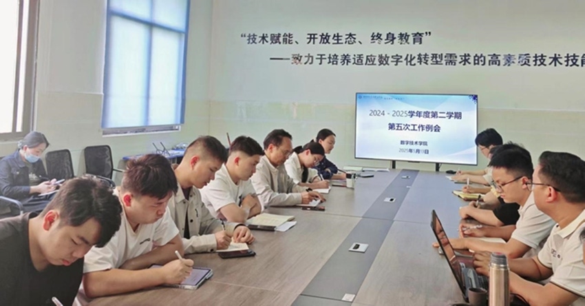 2025年5月13日,数字技术学院在1106会议室召开2024-2025学年度第二学期第五次全院工作例会。会议由院长魏斯民主持,全院教职工参加会议。