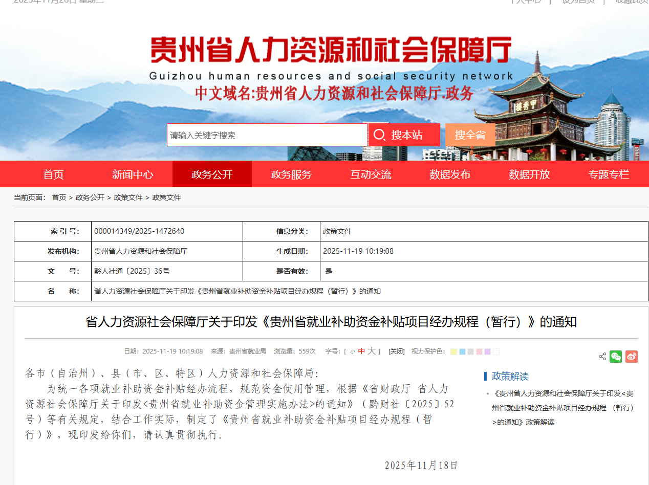 为落实好《省财政厅 省人力资源社会保障厅关于印发<贵州省就业补助资金管理实施办法>的通知》(黔财社〔2025〕52号)有关规定,统一经办流程,规范资金管理,结合工作实际,特制定本规程。
