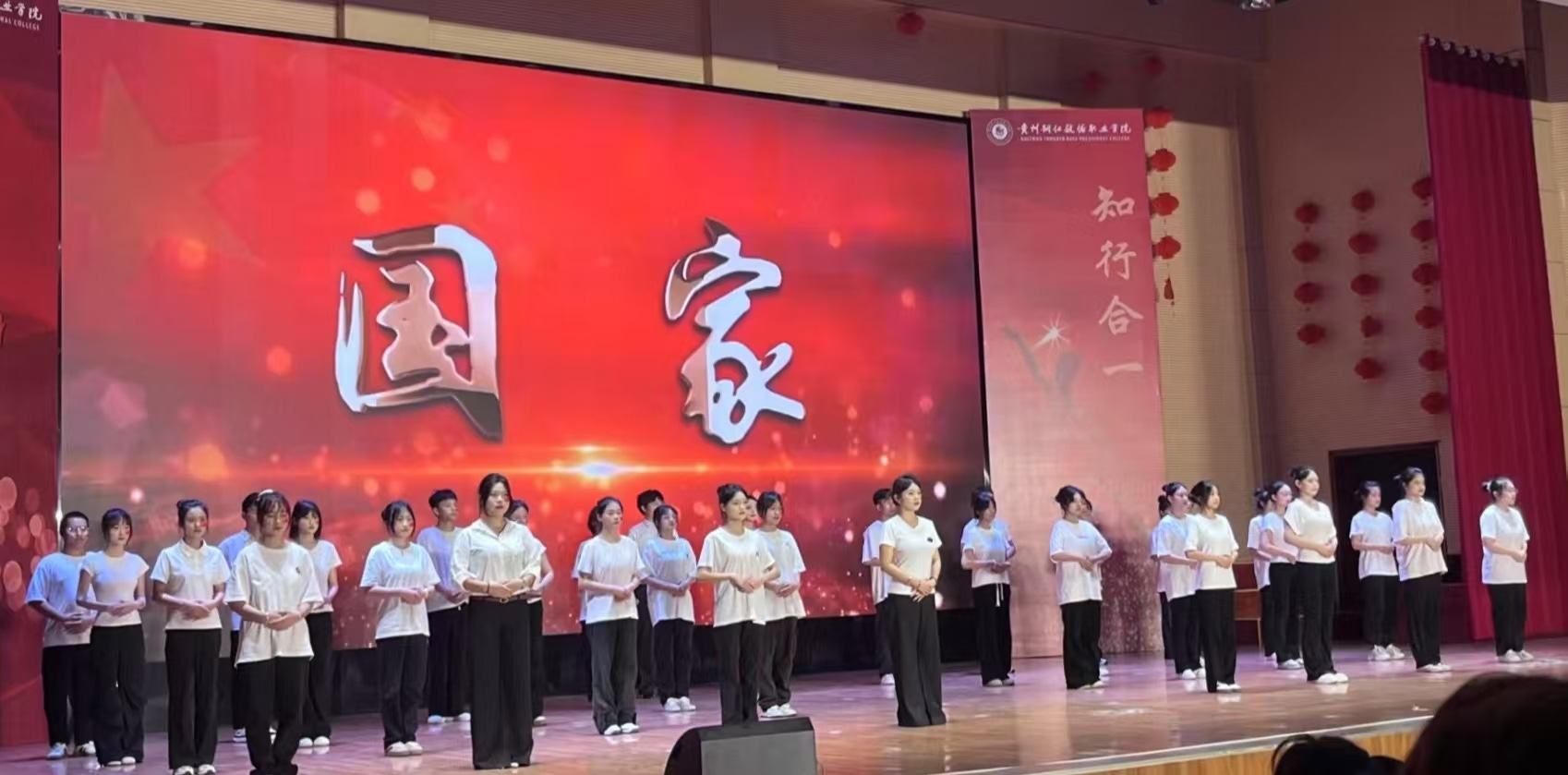 手语表演《国家》。由35名学生与1名教师共同完成,当“国是我的国,家是我的家”旋律响起,整齐划一的手语动作与背景屏中学院助力乡村振兴的纪实影像交相辉映,展现特殊群体爱国情怀,收获经久掌声。